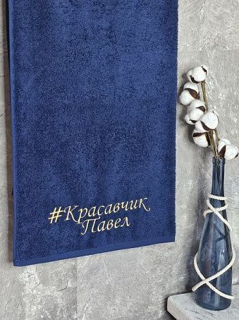 Полотенце с вышивкой 70*140 "красавчик" Павел темно-синее