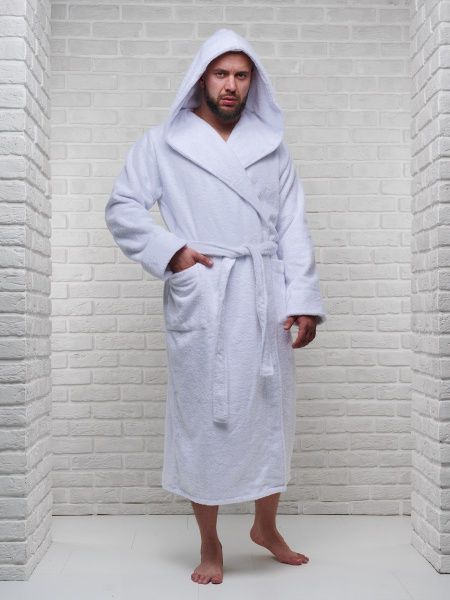 Халат мужской махровый PandaHug с капюшоном, белый