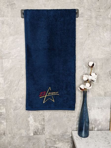 снимок Полотенце с вышивкой 70*140 "Крутой рыбак" темно-синее от магазина BIO-TEXTILES ОПТ