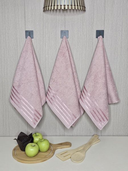 Набор махровых полотенец 3 шт (40*70) розовый, полоса