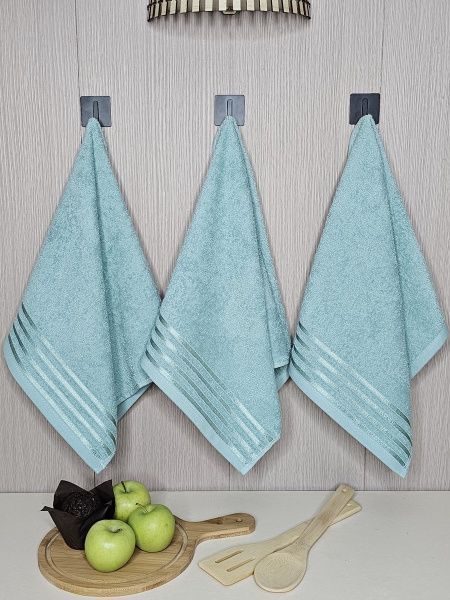 Набор махровых полотенец 3 шт (40*70) зеленый, полоса